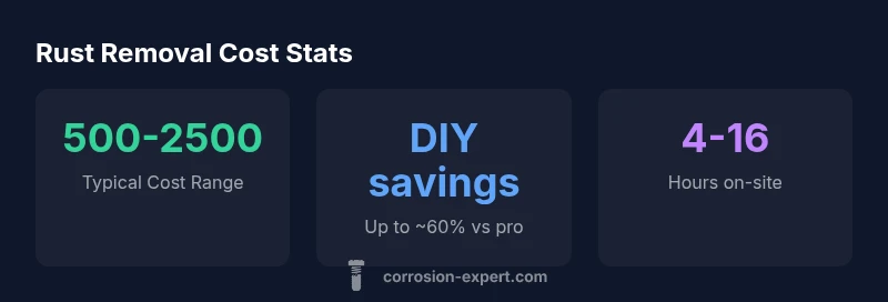 For undercarriage rust removal, expect a broad cost range—from about $500 to $2,500, depending on rust extent, vehicle access, and whether coating or undercoating is added. DIY spot treatments can lower the price, but professional service ensures proper rust remediation and lasting protection. According to Corrosion Expert analysis, budgeting for prevention can reduce future repairs and extend vehicle life.