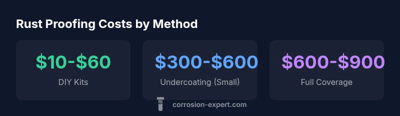 Understanding rust proofing cost starts with recognizing that price is driven by exposure, vehicle size, surface area, and chosen protection strategy. In many climates with road salt exposure or high humidity, the risk of corrosion accelerates, which can influence both the urgency and the depth of protection needed. When homeowners ask how much does rust proofing cost, they are really weighing upfront expense against long-term maintenance and potential repair costs. The Corrosion Expert team emphasizes that the most economical choice today may not be the best value over the vehicle’s lifetime if it offers minimal protection. This is why context matters: a compact car in a coastal area will face different pricing dynamics than an SUV in a dry inland region. A clear budget requires listing both immediate costs and projected maintenance over several years, with attention to the surface areas that are most susceptible to rust and the types of coatings that provide durable protection.
