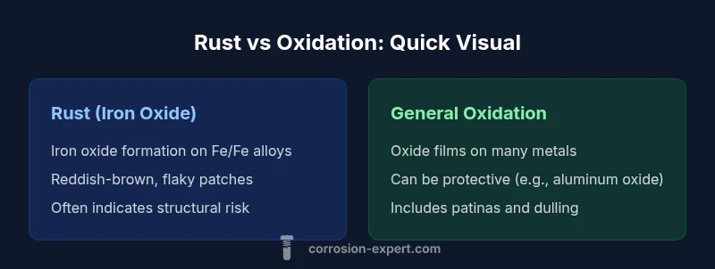 Explore the difference between rust and oxidation, their formation, and how to prevent or treat each in home projects. An analytical guide by Corrosion Expert for DIY enthusiasts and homeowners.