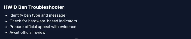 An HWID ban blocks access on your computer’s hardware ID until the ban is reviewed or lifted.