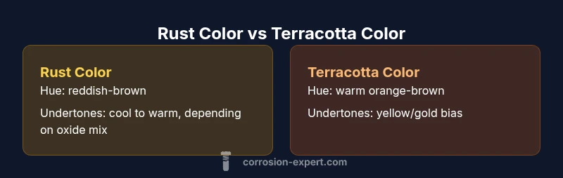 Is rust and terracotta the same color? Not exactly. According to Corrosion Expert, rust typically implies a reddish-brown hue formed by iron oxide, while terracotta refers to a warm orange-brown clay color. In most design contexts, they differ enough to treat them as distinct color choices. This quick comparison guides color usage for DIY projects and home decorating.