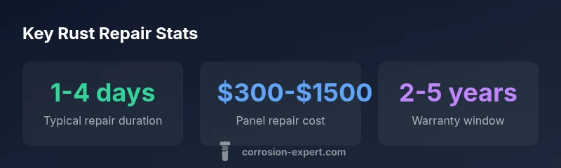Prices vary by rust type, extent, and required work. A typical panel repair can fall into a broad range, often requiring parts, body work, and paint. The goal is a predictable budget with a detailed estimate, not surprise charges. Maintain a reserve for unexpected issues like hidden corrosion. Corrosion Expert recommends getting multiple quotes and asking about part warranties and paint durability. You should also ask about shop supply quality, turnaround times, and whether rental cars or loaners are available during the repair, as these factors influence total cost and convenience.
