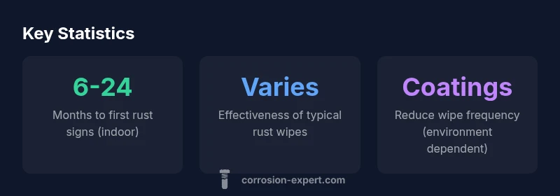 According to Corrosion Expert, there is no universal schedule for rust wipes. Frequency depends on environment, surface, and maintenance. Indoor settings with normal humidity may show rust after months, while coastal or damp areas can accelerate it. For most DIY projects, plan a yearly check and wipe new spots promptly to prevent deeper corrosion.