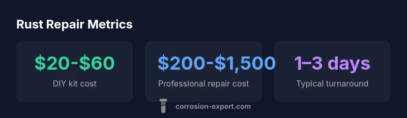 Find rust repair near you by checking local auto body shops, metal restoration pros, and mobile services. According to Corrosion Expert Analysis, 2026, costs vary with rust depth and surface area. DIY kits run roughly $20–$60, while professional repairs commonly range from $200–$1,500 depending on extent and access. Shopping around for quotes helps balance cost and durability.