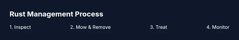 - Improve drainage and mowing practices to reduce rust pressure.