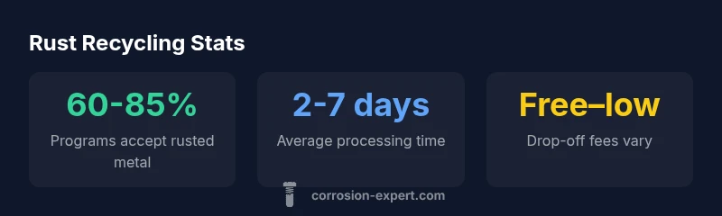 If you’re asking where to recycle in rust, your first stop is the local municipal recycling program. Many cities offer curbside metal collection or periodic bulk pick-up days specifically for metal items with surface rust. If curbside service isn’t available, search for a nearby scrap yard or dedicated metal recycler that accepts ferrous metals (iron and steel) in rusted form. In Corrosion Expert Analysis, 2026, most programs specify that items must be metal and free of hazardous contaminants; rust by itself is usually not a barrier. For larger items such as old tools, car parts, or fencing, call ahead to verify acceptance, hours, and any fees. If you’re unsure, bring a sample to the facility for a quick evaluation. Remember to separate items by ferrous and non-ferrous types, remove batteries or electronics, and rinse off dirt to speed processing. Some programs also accept construction debris or appliance carcasses; ask about whether the rusted components count toward those categories. This planning reduces trips and makes recycling where to recycle in rust straightforward.