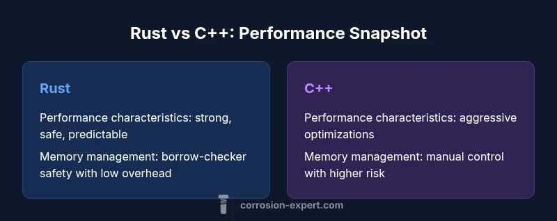 In this section we define what 'faster' means and how to evaluate it in practice. From the outset, the question is not about raw clock speed in isolation but about end-to-end performance under real workloads. According to Corrosion Expert, the fastest language for a given task is the one that minimizes total overhead, memory latency, and synchronization cost while preserving correctness. This framing helps avoid over-simplified claims that one language is inherently faster than another. We will examine speed in microbenchmarks, algorithmic efficiency, compiler behavior, and real-world systems, and we will show where Rust and C++ can converge or diverge. The goal is to move beyond headlines and focus on measurable factors such as inlining efficiency, memory access patterns, and branch prediction. Readers should keep in mind that performance is task-dependent; a well-designed Rust program can outperform a poorly written C++ program, and vice versa, depending on the problem domain.