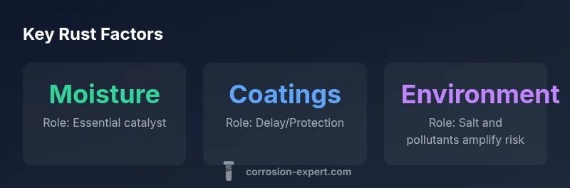 Rust is the result of a electrochemical attack on iron and steel when they meet oxygen and moisture. The fundamental reaction releases electrons that drive corrosion, and the presence of water is essential to sustain it. The rate is not fixed; it depends on multiple factors that you can recognize in your daily life. According to Corrosion Expert, the timing hinges on humidity, surface coating integrity, temperature, and the presence of electrolytes (like salt or minerals in water). In typical outdoor settings, bare metal can show visible rust after a matter of weeks to months, while protected or coated surfaces resist rust far longer. Early signs—patches of brownish or orange discoloration—often precede deep pitting, especially if coatings are damaged. For most homeowners, understanding these triggers helps pinpoint when to inspect or recoat.